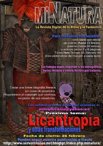 Revista digital miNatura: Me alegro de que te gustará el tema, debo reconocer que me preocupaba no recibir suficientes trabajos debido a que el Steampunk ha sido poco tratado en lengua castellana, sin embargo los colaboradores reaccionaron muy positivamente con textos de excelente calidad y original tratamiento del argumento. Ahora recopilamos Hombre Lobo y otras transformaciones cuya fecha de cierre es el 25 de febrero.