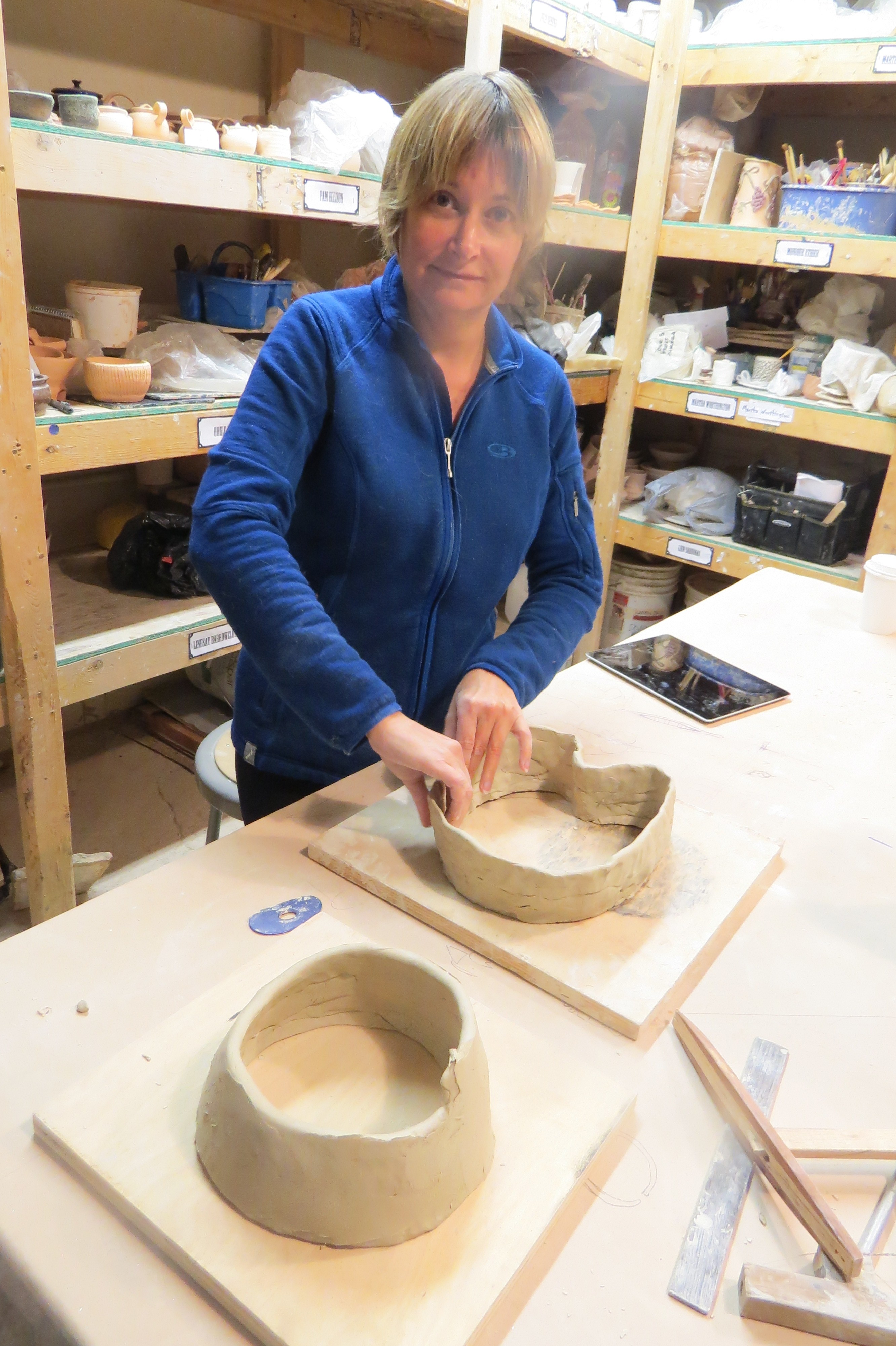 Después de la demostración el día de la Caminata de Arte decidí tomar una clase de cerámica. ¿No sería más divertido trabajar con las manos y crear algo tangible que pasarme el día aposentada ante la pantalla de la computadora? Valía la pena averiguarlo.