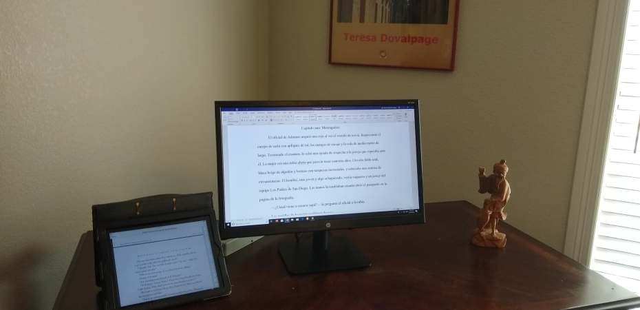 Mientras tanto, se me ocurrió abrir el documento en inglés en mi iPad y ponerlo al lado de la computadora, así: