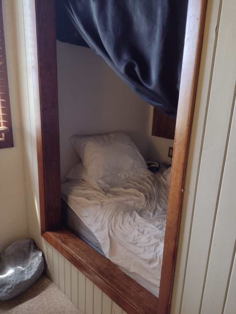 No se sienten claustrofóbicas, como pensé al principio, sino muy acogedoras. Hay “ruido rosado” (no sé si se dice así en español) algo que suena como olas del mar al romper en la orilla. El ruidillo sale de los altavoces ubicados dentro de la cheché durante toda la noche, aunque, desde luego, se puede apagar. Es un sonido relajante, pero yo prefiero dormir en silencio total.