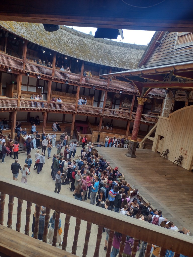 El día de la puesta en escena de Romeo y Julieta, el teatro estaba lleno. Un montón de gente vio la obra de pie, pero las galerías también estaban repletas. Y no solo de turistas, aunque The Globe está situado en una zona relativamente turística, junto al Támesis, sino de londinenses que aman el teatro.
