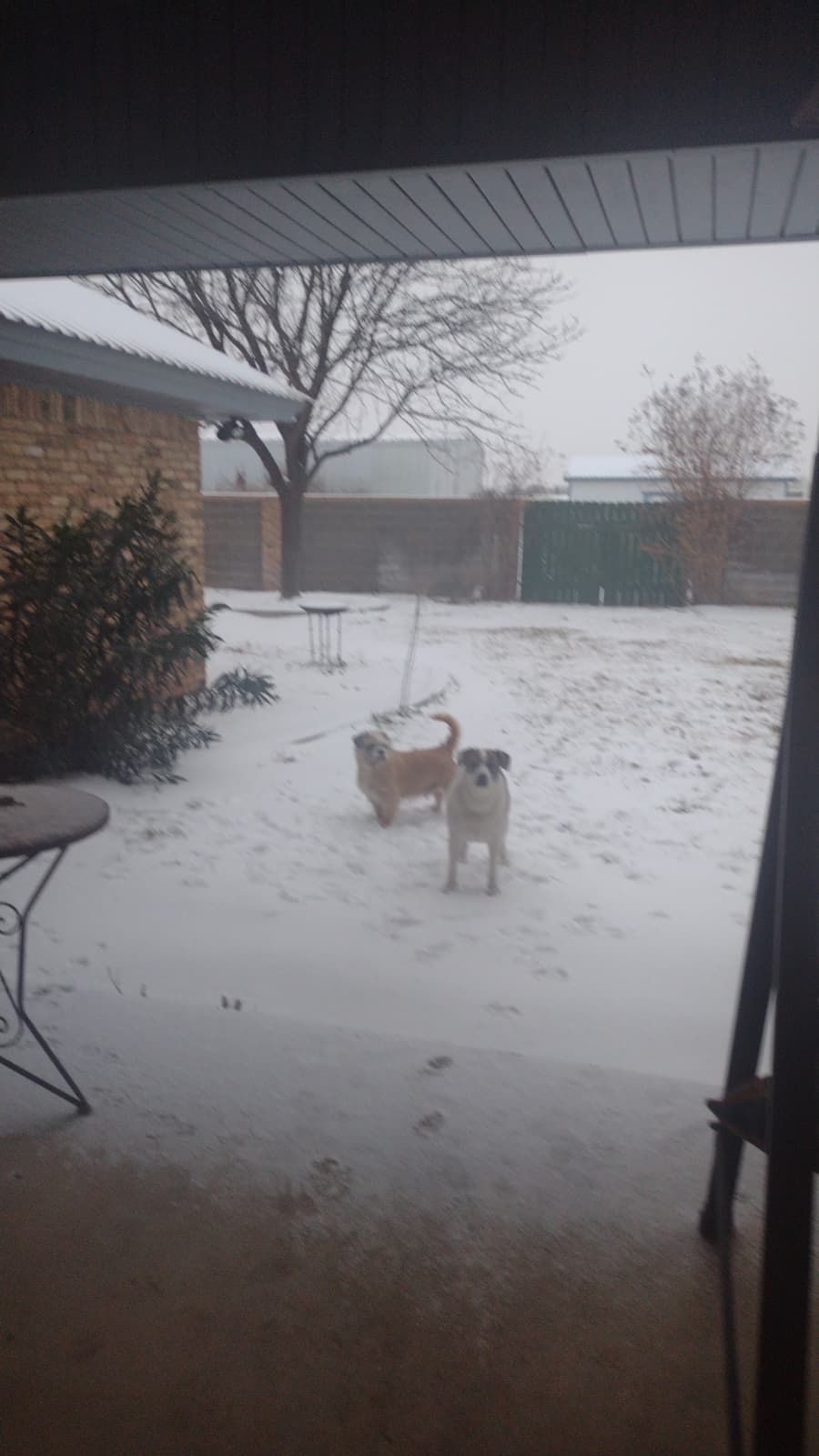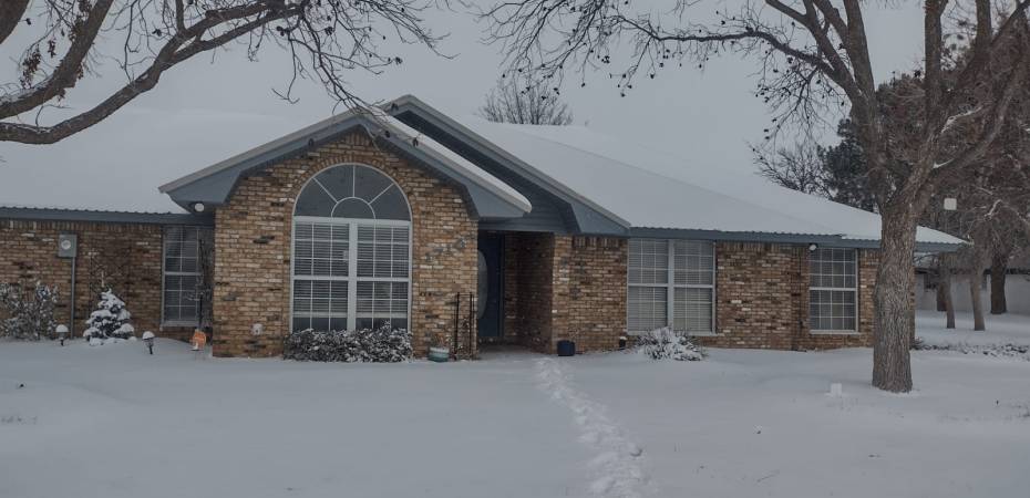 Nieva en Hobbs, y eso es algo que no se ve todos los días. Creo que hemos tenido nevadas como esta, nevadas de verdad, solo dos o tres veces en los ocho años que llevamos en la ciudad.