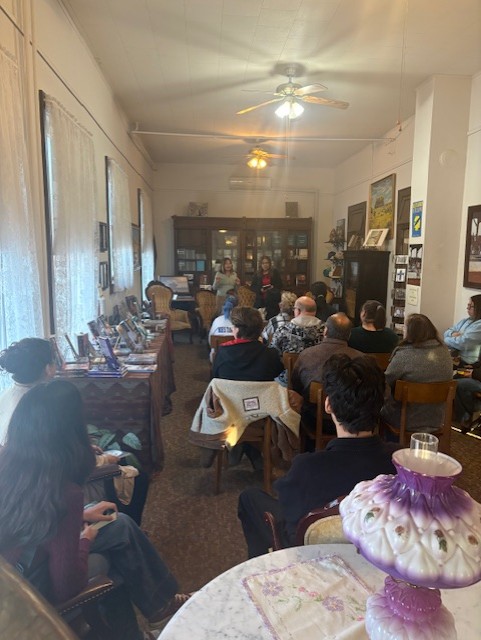 Sobre el lugar, el Museo de Lea County: tal vez algunos lectores recuerden que allí llevé a mis estudiantes de Inglés como Segundo Idioma el semestre pasado. Ellos escribieron artículos inspirados en las salas y dependencias del lugar, que fuera originalmente un hotel, y luego la colección se publicó con un grant de New Mexico Junior College. Por supuesto, llevé este libro, Learning Local History, para promoverlo también.